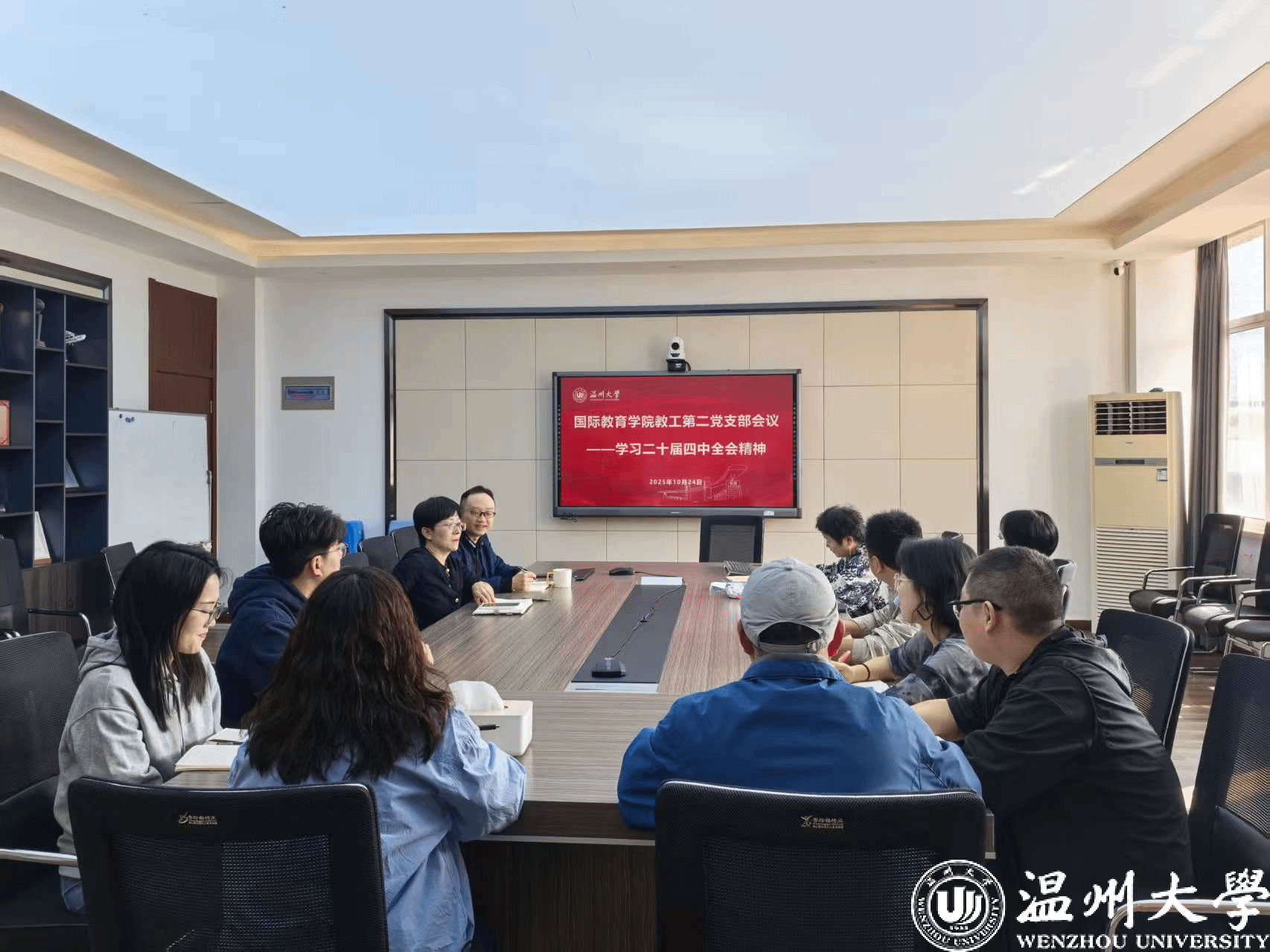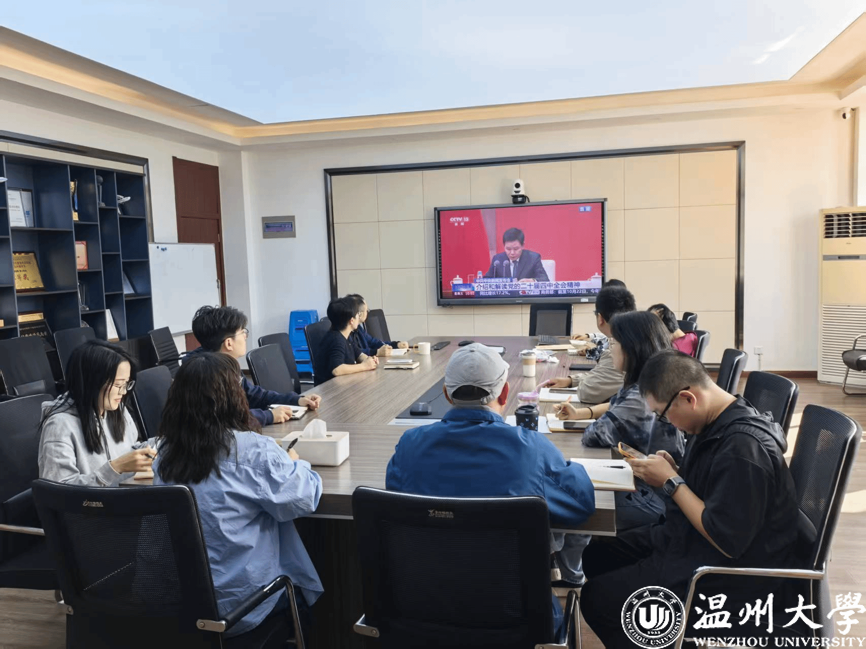 会议伊始,全体参会人员共同观看了中共中央举行的新闻发布会,会议介绍和解读党的二十届四中全会精神。通过直观的影像资料,大家对会议的概况和重要议题有了深刻的认识。