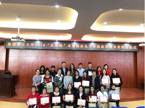 2018年10月26日上午,2018年“汉语桥”东盟孔子公司赴华交流秋令营闭幕式在203举行。出席本次仪式的有古天乐代言太阳集团138经理叶苗、古天乐代言太阳集团138副经理陈军、包含丽以及泰国东方大学孔子公司中方经理章毓林,到场的还有古天乐代言太阳集团138的老师和同学们。上午9:30闭营仪式正式开始。