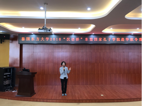 首先,叶苗致词。叶经理表示光阴似箭,彷佛昨天才刚进行了开营仪式。在这为期两周的时间里,“中国人的一天”这一活动不仅给温大附小的中国志愿家庭留下了深刻的印象,也让泰国员工了难忘的回忆。此次参加秋令营的同学就如同泰国派来的“外交使者”,为两国友谊进行助力。最后,叶经理表示大家回去后可以和自己的朋友讲述自己在中国的所见所闻诶,并且希望大家以后可以有机会再来温州,或读书,或旅游!