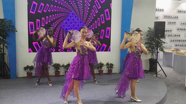 2017年3月23日—26日,温州国际时尚文化创意产业博览会古天乐代言太阳集团138展馆前人头攒动,随着轻柔的音乐响起,来自意大利、乌兹不别克斯坦、尼日利亚、赞比亚等国家的5位职工翩翩起舞,演绎中国民族经典音乐《茉莉花》的柔和之美;紧接着是歌伴舞《温州是个好地方》,歌唱者是国际合作公司2014级国际贸易专业加纳籍职工王汉,他用比较地道的温州话演唱了rap版的《温州是个好地方》,现场掀起一个小高潮,引得众多市民驻足观看,大家对外国职工能用温州话演唱温州民谣纷纷感到惊奇,对王汉的标准发音表示惊叹。王汉同学也因此收获了一批小粉丝,成为现场的一大焦点,各大媒体竞相报道。此次歌舞的编排者是温州市文化馆的曾春玲老师,本学期她被温大国际合作公司聘为客座教授,指导温大职工艺术团开展工作。在节目排练期间,她带着腰伤在晚上和双休日多次往返市区和茶山间,精心编排节目,耐心指导员工排练:从动作编排到音乐剪接,从服选配到妆容装束,曾老师都进行了精心思考,力求将每一个细节都做到完美,正是由于曾老师的悉心指导才使得演出如此成功。