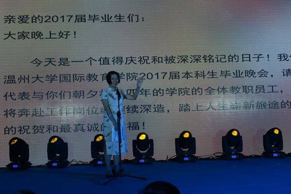 叶苗在欢送会上致词。她祝福全体员工顺利毕业,祝贺近20名获得华威、诺丁汉、曼切斯特等世界名校OFFER以及获得省级优秀的毕业生。她希望,中外毕业生们在中国“深度拓展一带一路”和“建设命运共同体”时代背景下,要树立与这个时代主题同心同向的理想信念,勇于担当这个时代赋予的历史责任,不忘初心、找准人生航向。国际毕业生要成为宣传中国、宣传温大的友好使者,为中外交流做出应有的贡献。
