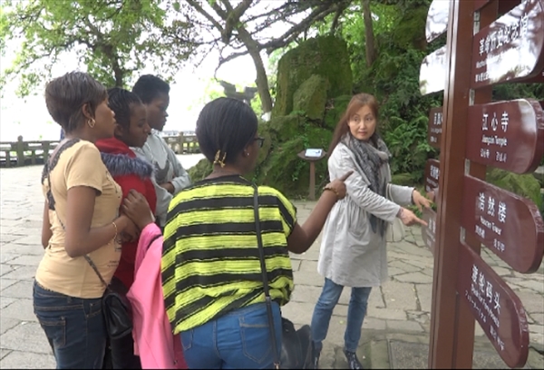 到达江心屿后,职工们根据老师给的任务,热火朝天地开始了语言实践活动。完成任务的过程中,来自乌兹别克斯坦的王浩同学和一群春游的小员工成为了好朋友,简单的中文问候中充满了欢声笑语。来自喀麦隆的Cynthia用流利的汉语和一位年近七旬的老奶奶进行交谈,尽管老奶奶的温州普通话让她理解起来有点儿费劲,但她还是顺利找到了目的地。来自德国的大卫和美国的艾米两位同学,一路上不停地用汉语解说:“大家好,我在温州,这是江心屿,你看,这里就是岛上的寺庙——江心寺。我觉得这个建筑看起来很中国,请大家跟着我继续往前走。”标准流利的汉语让路人纷纷竖起大拇指。