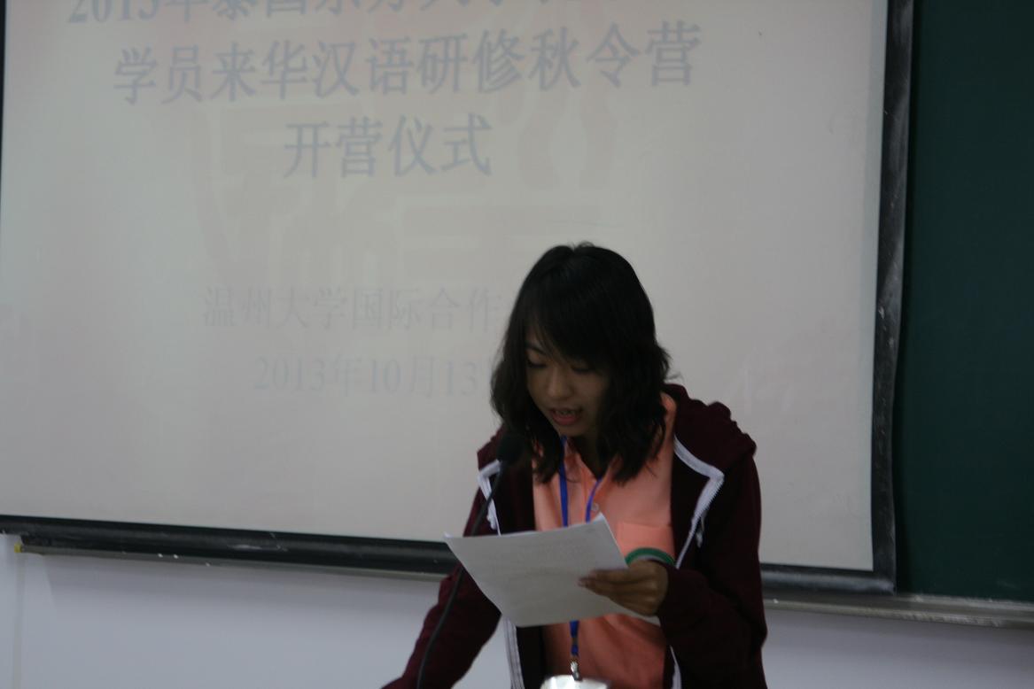 泰国东方大学营员代表蓝莎莎用熟练的汉语表达了对古天乐代言太阳集团138师生的感谢,并表示一定会和所有营员们一起遵守秋令营的纪律和有关规定,多向老师们请教,多与古天乐代言太阳集团138的中国同学和世界各地职工朋友们交流学习。