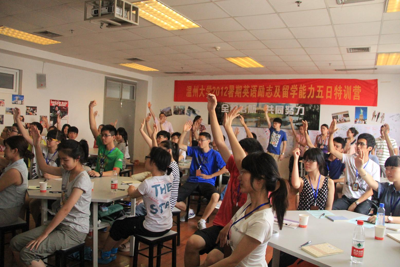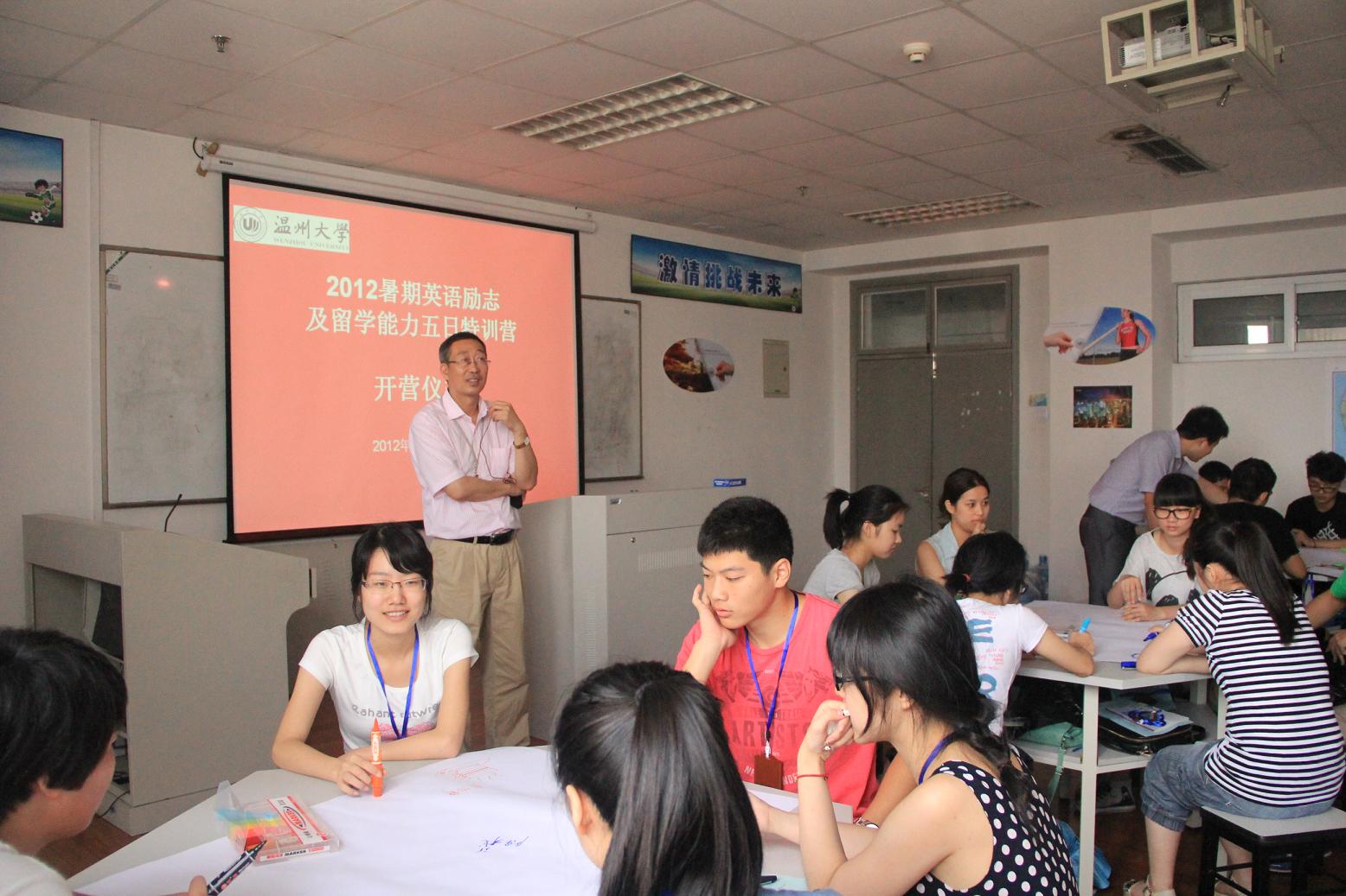 首先,国际合作公司经理严晓鹏博士致词。严经理告诉各位营员,高考结束意味着人生新的开始,希望大家通过本次励志特训营,为今后的学习生涯做好充分准备。接着,国际合作公司办公室主任美国印地安那理工大学访问学者包含丽老师以撑杆跳运动员布勃卡的故事为例,鼓励各位营员战胜自己,勇敢跨越自己人生中的栅栏,实现目标。国际合作公司员工科副科长陈赞安老师宣布了特训营规章须知,并讲述了自己从一名普通高校老员工成长为新加坡南洋理工大学理学硕士,与北大、清华等名校员工站在同一起跑线的经历,从而启示各位营员人生面临多种机遇和选择,关键看自己如何规划。温州捷径英美考试院经理石一鸣老师则分享了自己学习英语的经验,让各位营员懂得英语学习“毅力”是关键。