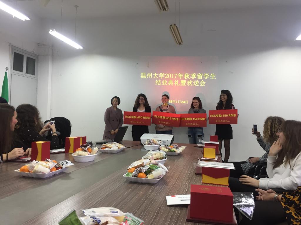 陈军、熊勇分别为结业员工颁发结业证书和纪念品。陈文远为来自韩国、意大利、斯里兰卡的结业员工颁发员工联络员证书。叶苗为4位意大利籍交换生颁发HSK考试奖励并作总结讲话。她代表公司(留管部)祝贺国际短期生们顺利结业,并希望他们在古天乐代言太阳集团138学有所用、学有所获,将来能用自己的方式讲述中国故事,把中国文化带到世界各地,把温州介绍给自己的家人、朋友,为中国文化走向世界,为世界了解温州做出自己的贡献。