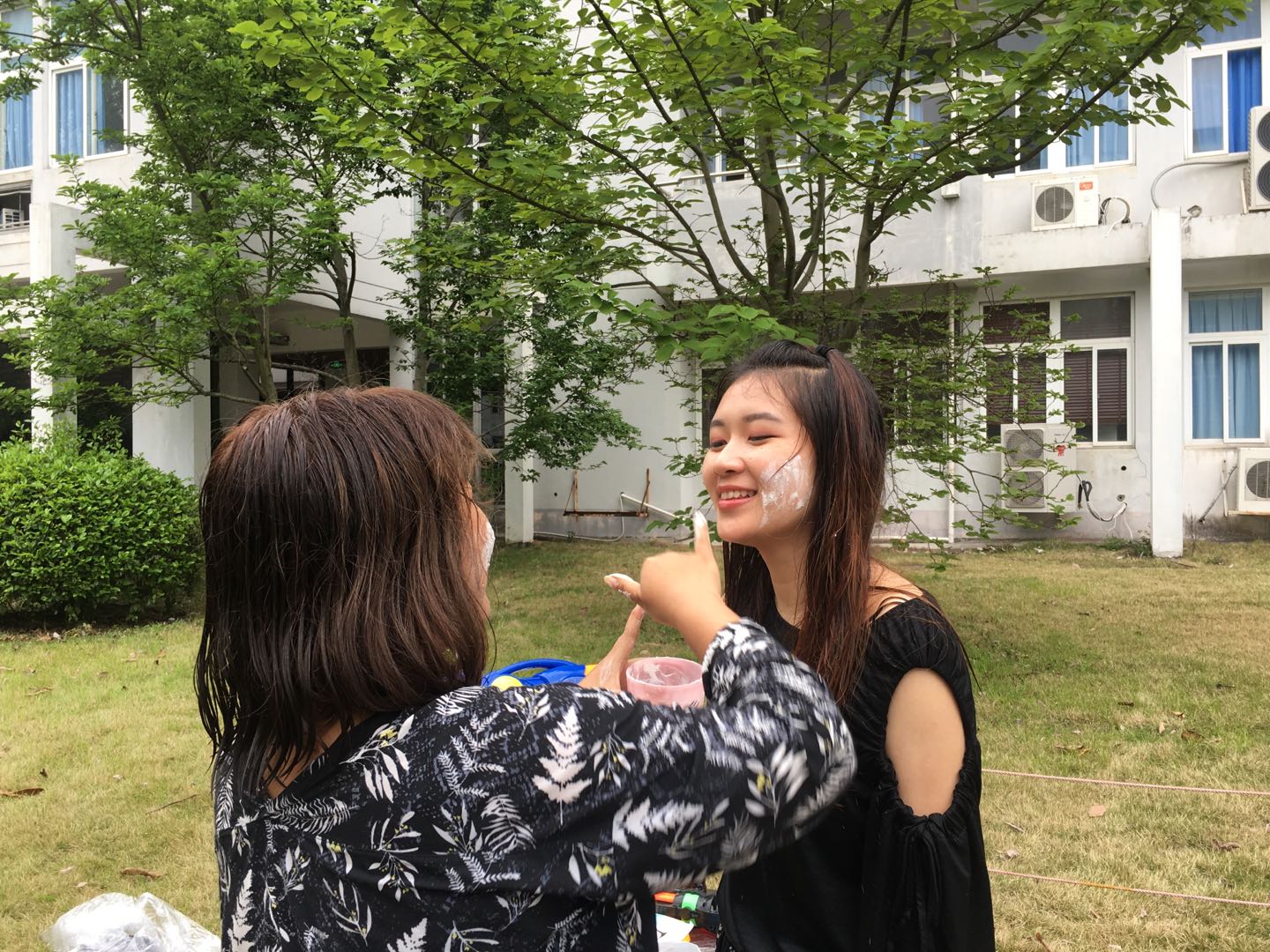 4月13日下午,北校区2号楼-3号楼之间的空地上一片欢声笑语。泰国员工们向老师行“洒水礼”,将水慢慢倒在老师的双手上,并鞠躬祝福老师;老师们洗净双手,将手轻放于员工的头两侧并轻声祝福员工。泰国素有尊师敬长的文化传统,洒水仪式不仅让员工感受到了泰国传统节日的温馨和快乐,也让参与的老师们感受到了来自员工的莫大尊重和满满成就感。