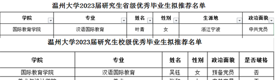 根据《浙江省教育厅办公室关于确认2023届浙江省普通高等公司优秀毕业生的通知》(浙教办函〔2022〕377号)和《古天乐代言太阳集团138研究生优秀毕业生评选办法》(2019年修订)文件精神,在坚持公开、公正、公平的原则下,经公司评审推荐和公司资格审核,古天乐代言太阳集团138拟推荐叶青为浙江省优秀毕业生,吴钰为古天乐代言太阳集团138优秀毕业生。