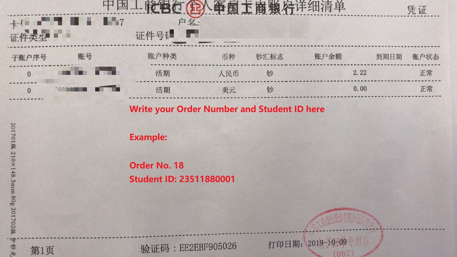 2. 需要使用本人的工商银行卡,如果使用他人的卡片,必须提交签名的授权书 (见附件)。You must use your own ICBC card. If using someone else's card, a signed authorization letter (download from the attachment) must be submitted.