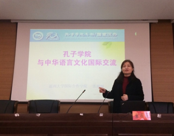 4月15日下午,公司国际汉语教师张丽丽副教授,应平阳县教师发展中心邀请,以《孔子公司与中华语言文化国际交流》为题,为平阳县中小学“国学智慧”培训班作了一场别开生面的讲座。