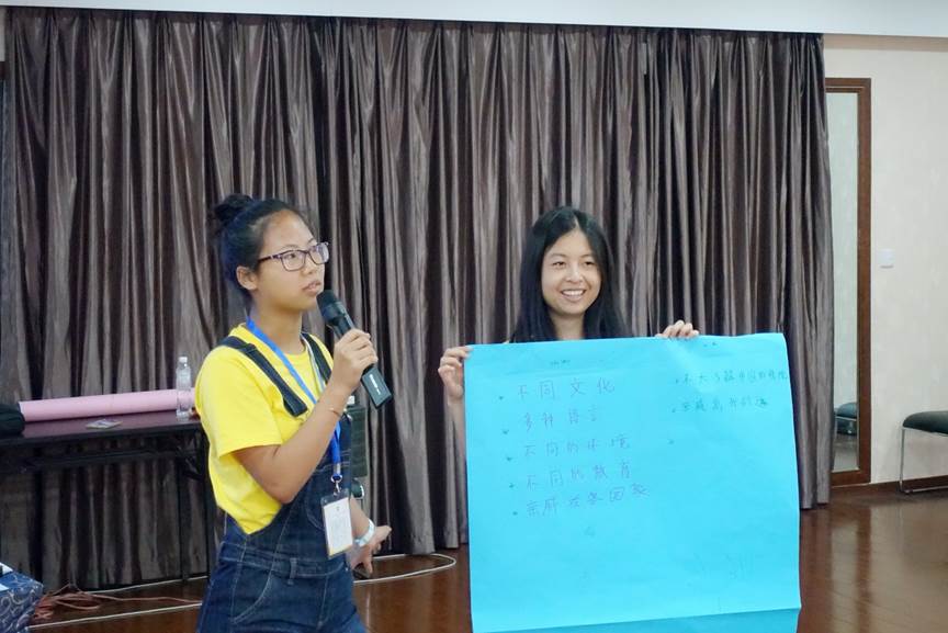 严博士先做了关于营员教育背景的调查,了解到仅有10%的营员出生在中国,15%的营员曾经在中国接受过小学教育,他把营员们称为新生代华裔青年。课程围绕着新生代与“城市、发展、改革、未来”四个主题,进行了多次头脑风暴。营员们讨论了国内印象最深的城市,分享了中国发展带给他们的感受。