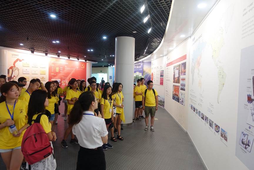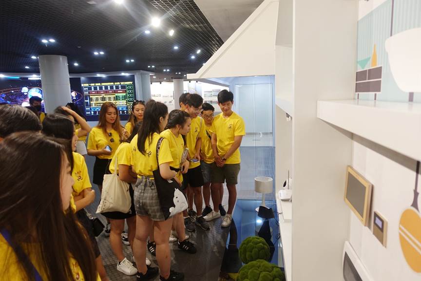 到达正泰集团自动化展厅后,讲解员为大家介绍了正泰集团的企业文化,企业使命、目标、精神、价值观、经营理念等,使营员们对集团的企业文化有了进一步的了解。而后,展厅中的大数据中心向大家展示了正泰集团的数据网络系统、全球工厂分布、销售分析、智慧物流平台等信息,营员们由此明白正泰集团的运作模式。知道了集团的整体运作后,讲解员向营员们介绍了创意插座产品,讲解了户用光伏电站系统原理图,并展示了智能家居系统。智能机器人“小白”引起了营员们的极大兴趣,营员们纷纷上前呼唤“小白”,看着“小白”指挥电器准确地完成开关灯、开关电视等指令,营员们不由地对智能家居系统表示赞叹,对正泰集团的先进技术表示钦佩。