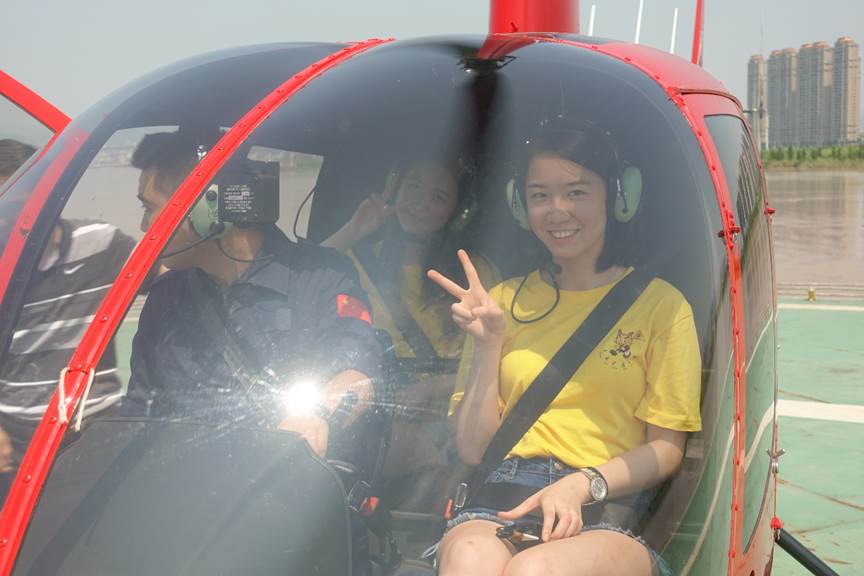 直升机从江心西园起飞,沿着江心屿外围飞行一圈,带着营员们俯瞰了温州的优美风光,将江心屿的美景尽收眼底。许多营员在直升机上兴奋地尖叫,下来后立马同朋友分享感受,被飞行旅游观光这种形式深深地吸引,对中国通航产业的发展充满了期待。