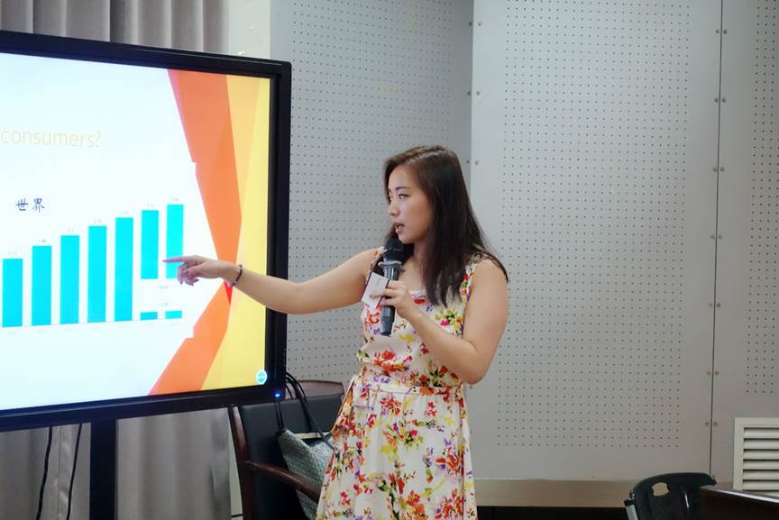 主持人郑婷老师首先为大家隆重介绍了出席本次论坛的评委老师:古天乐代言太阳集团138创业公司钟卫东副教授、古天乐代言太阳集团138副经理包含丽以及古天乐代言太阳集团138张珉璐博士。在创业项目展示环节,四个小组分别对自己的创业计划进行了阐述。斯洛伐克组的VR技术、丑八怪组的“微观银行”:通过移动设备、个人数码助理来平衡检验、转账、存款、支付、信贷申请、借款、理财等;吃货组的“非接触式无线充电宝”;二星组则是从公益环保理念入手,“全民食堂”的项目让大家在APP上共享食物,将吃不完的蔬菜、水果、零食等食物存放在指定地点,供需要的人低价购买。