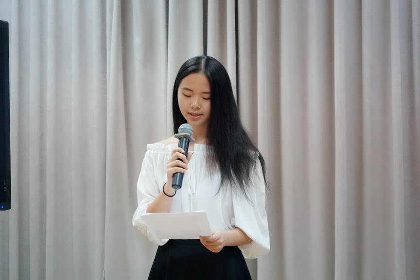 几位演讲者自然流露的真挚感情感染了在座所有营员。接着,包含丽老师从演讲者的身体形态、语音语调、与听众的互动等方面对几位演讲者进行了全方位点评,她还寄语商务营的所有营员,铭记在商务营所学到的知识,努力成为一名优秀的演讲者。最终,通过评委老师的打分加上营员们的投票,来自西班牙的诸葛茜茜同学获得最佳演说家奖。