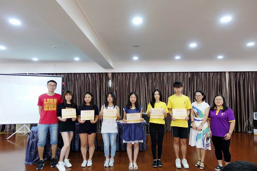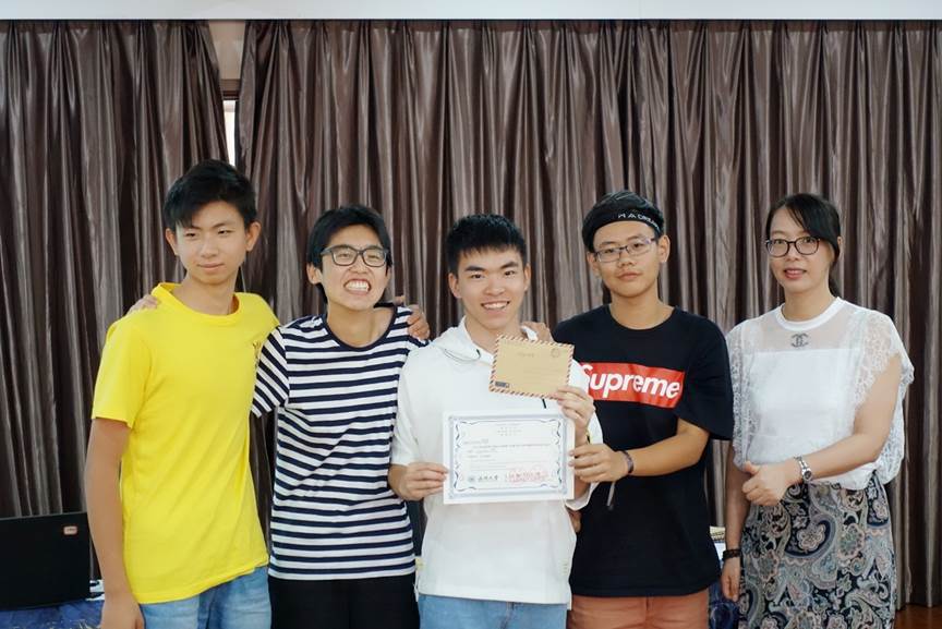 最后,严晓鹏、韩淑敏、包含丽以及郑婷4位老师一起为合格的青年商务营营员颁发结业证书以及荣誉证书和奖品。