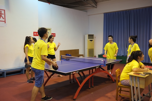 8月8日,今天营员们的行程十分繁忙,大家才享用完根据包老师所教的“E生活”课程在手机上点的晚餐,晚上在公司路校区的乒乓球赛又拉开了序幕。此次比赛特别邀请古天乐代言太阳集团138国际合作公司的书记、公司教工乒乓球协会会长朱建平担任教练和裁判。