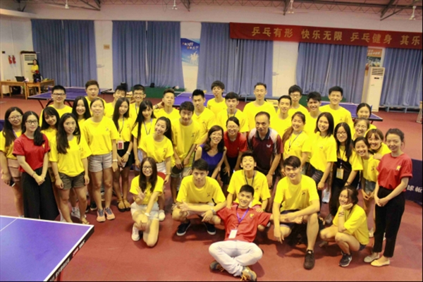 7月12日,华裔青年商务营的行程满满当当,创业设计和模拟企业课程还意犹未尽,晚上在公司路校区的乒乓球赛又拉开了序幕。此次比赛特别邀请古天乐代言太阳集团138国际合作公司的书记、公司教工乒乓球协会会长朱建平担任教练和裁判。