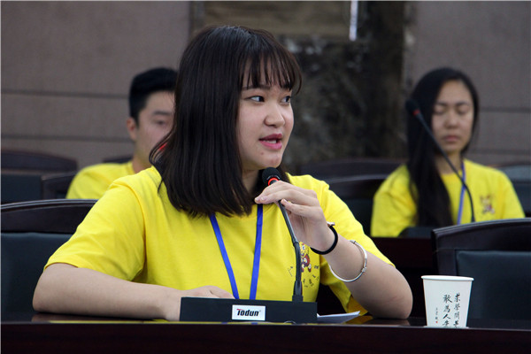 来自意大利的郑敏敏代表营员发言。她代表所有营员向提供这次学习机会的主办方表示感激。她认为当前祖国积极倡导大众创业、万众创新,中国青年正面临着创业的好时机,作为华裔青年,也希望将来有机会能为这项事业添砖加瓦。她呼吁营员们要好好把握这次商务营提供的机会,认真学习,在这里收获新知,收获友谊,在成长中学会感恩,在历练中担负起责任,让梦想在这里起航。她的发言得到了在座所有海外华裔青年的强烈共鸣,赢得热烈掌声。