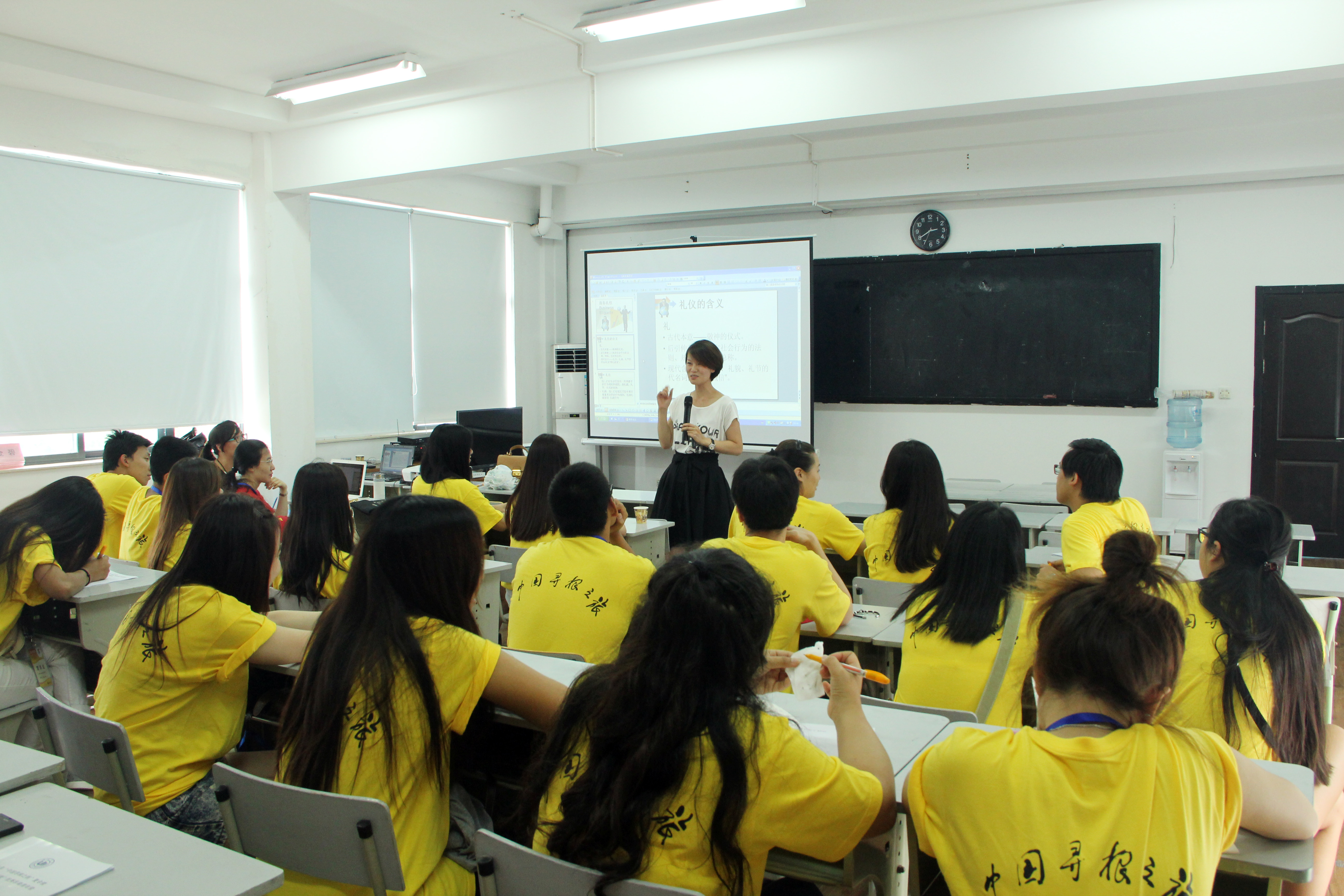 温州的经商气息十分浓厚,温州人将这种气息传播到世界各地,他们以自己的勤劳实干和敢为天下先的精神成功经营着自己的生意。作为温州籍的华裔青年们,很多人学习的专业是商科,人生目标也是作为一名优秀的商务人士,而要实现这个目标,掌握必要的商务礼仪是不可缺少的。7月4日下午,营员们参加了一场别开生面的商务礼仪讲座,讲座由国际合作公司讲师章云燕老师呈现。