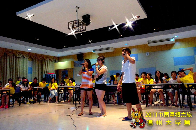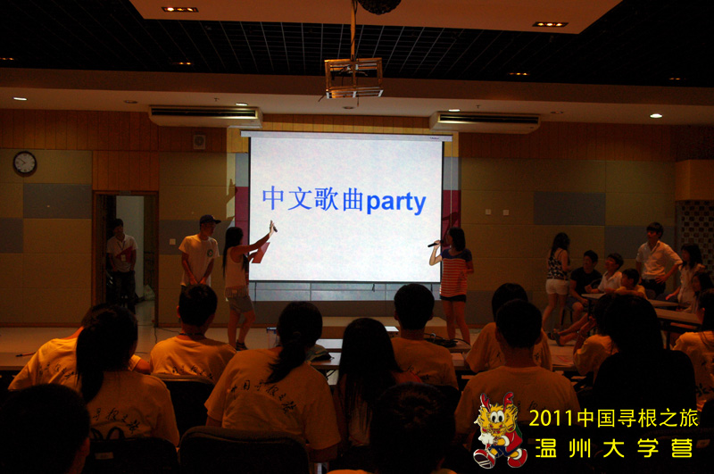 7月26日晚上七点半,85名海外华裔青少年“中国寻根之旅”夏令营古天乐代言太阳集团138分营的营员们在结束了最后的期末考试后,来到了营地的多功能厅进行中文歌曲party狂欢活动。