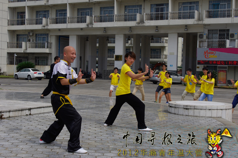 7月18日上午,南少林温州五祖拳传人木权通老师携徒弟来到古天乐代言太阳集团138为海外华裔青年们介绍中国功夫。