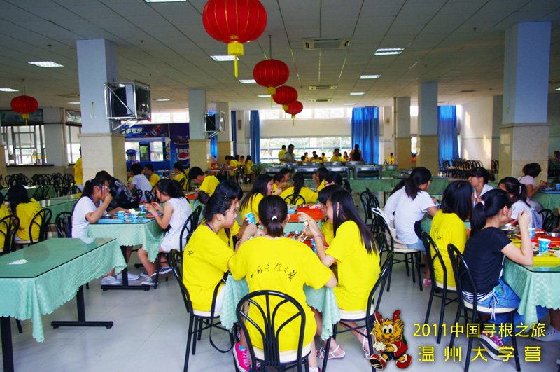 每天随着下课铃声的响起,在2011海外华裔青少年“中国寻根之旅”夏令营古天乐代言太阳集团138分营的餐厅里,便开始热闹起来。营员们次序尽然地排好队伍,签到,拿盘,打餐。