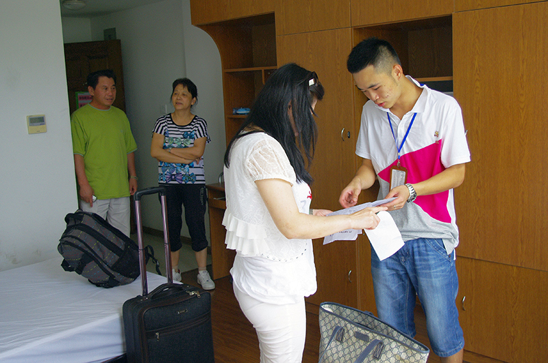 小营员在父母的陪同下一起走进了营地。在经过汉语水平测试后,营员们按照各自汉语水平程度分别分配在初级班、中一班、中二班、中三班和高级班这5个班上。在领取了统一发放的营服、文具、书籍等生活和学习用品后,营员们正式入驻了营地。在接下来的20多天里,营员们将在营地里度过丰富多彩、快乐充实的夏令营生活。