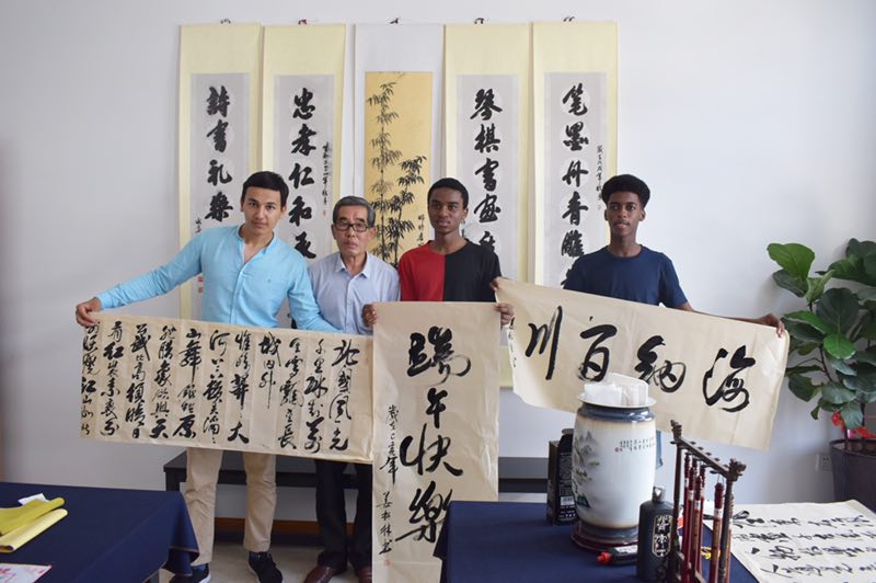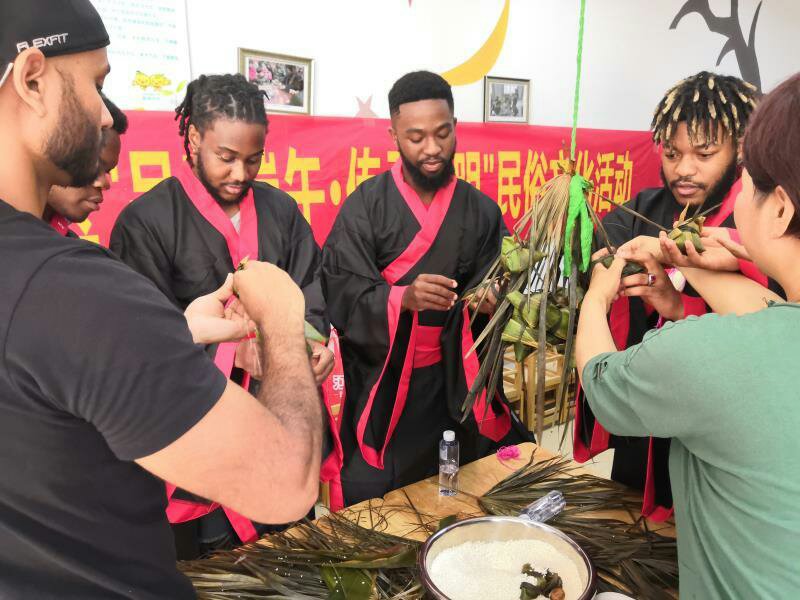 6月4日上午,温大职工走进龙湾区状元街道银龄养老服务中心参加“跨越国界的爱——外国职工走进社区之端午敬老公益活动”。来自坦桑尼亚、尼日利亚等国家的职工为老人们表演了小组唱《We Are The World》,寓意四海皆一家,大家携手创造更美好的明天。与老人们一起打桌球和乒乓球,跟着书法大师学写“端午快乐”毛笔字,为老人表演了篮球友谊赛,还与老人们共进午餐,祝福老人们健康长寿。此次情系端午节,爱在养老服务中心之行,让职工们了解了温州市养老服务情况,看到了老人们安心、舒心的环境,感受到了老人们晚年老有所居、老有所依,老有所乐的幸福生活。当职工们得知舞台上表演武术的精神矍铄老人已经81岁高龄的时候,他们纷纷发出赞叹。2016级职工FRED感慨道,“今天真是个美妙的日子,感谢公司给我一次这么重要的经历,在端午节的时候来到这里,提醒我们要学会照顾老人,这是全世界都一样的。”