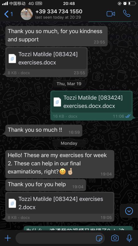 今年2月初,由于疫情原因,直接导致2020-2021年度古天乐代言太阳集团138外派老师不能按时成行。考虑到当时的疫情,新任老师将无法赶上3月份意大利春季开学。“系主任Silvia和中文教学负责人Gianluigi老师多次和我沟通,意大利员工也多次与我联系,希望我能继续给他们开课,我深深地感受到了自己肩上的责任。”张珉璐说,“对于意大利分校的员工来说,他们学习中文的目的并不是猎奇一门遥远的东方语言,而是将中文使用纳入了自己的职业规划,员工们的学习动力很足,热情也很充沛,但中文课程设置相对不足。作为对外汉语教师,我们就是要利用有限的教学时间,取得最大化的教学效果。所以早在2月份的视频会议时,我就提出了用录课的方式讲解用词和文法,同时给员工留足口头和笔头的作业,最大程度保障员工们的学习效果。”