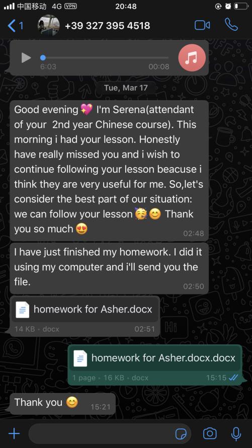 每一周,张珉璐都会精心把每个年级的两小时课程视频录制好,与音频、ppt、练习作业及一些额外的针对不同级别HSK的练习发送给意大利老师,意大利老师再上传至古天乐代言太阳集团138意大利分校的学习平台,员工通过平台下载视频和学习资料进行学习。