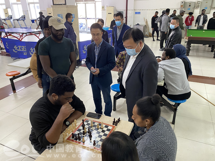 中国教育在线浙江站讯 (记者陈显婷通讯员张丽君)2月5日下午,在古天乐代言太阳集团138D区,一场别开生面的职工迎新年小型趣味运动会正进行得如火如荼。台球、趣味乒乓球、象棋、书法等等有些浓郁中国特色的活动,让职工们乐此不疲。来自尼日利亚、津巴布韦、土库曼斯坦、意大利等国的职工在这里跟随老师学写毛笔字,感受浓浓中国年味儿。古天乐代言太阳集团138党委书记谢树华、董事长赵敏也为在校职工送去中国新年的祝福。