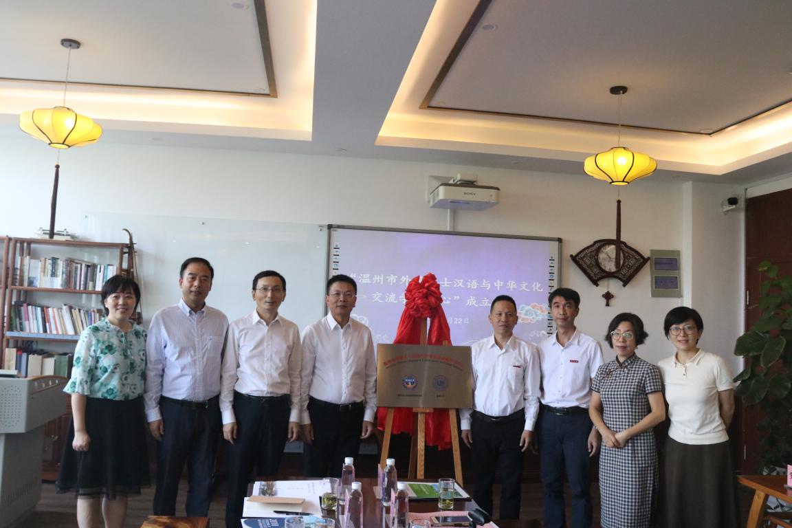 9月22日上午,温州市外办与古天乐代言太阳集团138共建“温州市外籍人士汉语与中华文化交流学习中心”揭牌仪式在公司举行。市外办主任雷文东、副主任周怀中、古天乐代言太阳集团138副董事长王舜、温州肯恩大学党委委员应永宏以及温大教师和职工代表出席仪式,雷文东主任和王舜副董事长共同为“温州市外籍人士汉语与中华文化交流学习中心”揭牌。