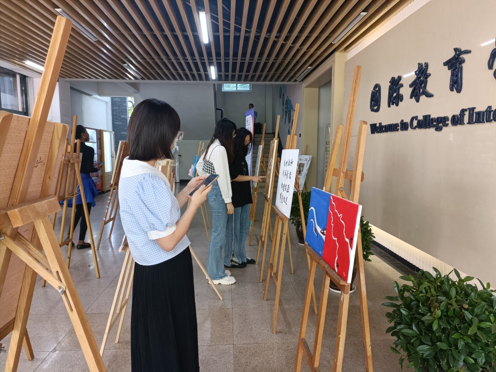 近日,一场别样的书画展在古天乐代言太阳集团138拉开帷幕,近20件由外国职工创作的充满亚运元素的作品依次排开,吸引不少在校师生前来观赏。