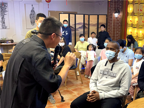 雅集除了不少本土音乐爱好者,也吸引了数位外籍职工。他们在现场聆听乐曲的同时,非常好奇,酷似“烧火棍”的中国传统乐器是如何吹响的?来自索马里的Ahmed(中文名马腾)和来自赞比亚的Claire(中文名克丽尔),各自用了不到一分钟的时间,在刘振老师的指导下,成功吹响中国竹笛,掌声满场。最后,雅集在大齐奏《我的祖国》中结束。
