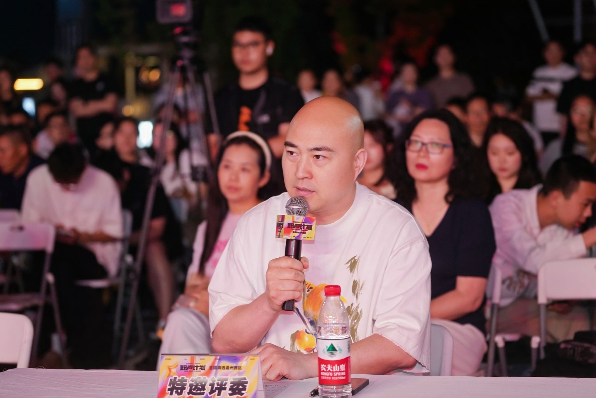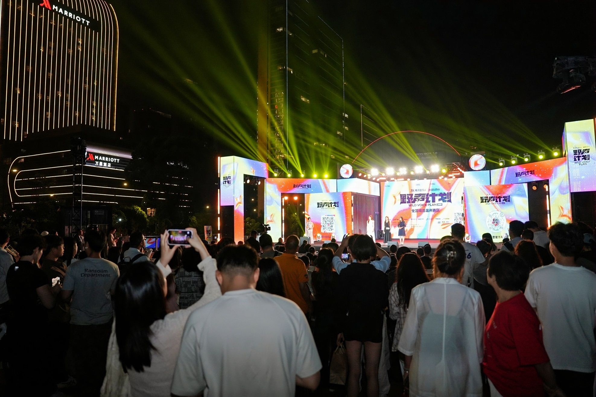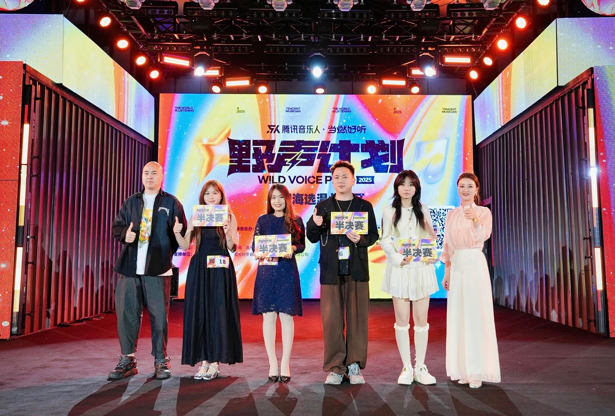 “腾讯音乐·野声计划”全国海选温州赛区于4月5日在平阳万达广场进行首场海选,此后在公司举行两场、在华润万象城举行一场海选。5月2日晚迎来首场复赛,现场搭建的大型舞台流光溢彩,伴随着时而劲爆时而舒缓的音乐,18名选手按抽签顺序依次上台一展歌喉。温州市流行音乐协会主席团成员、副秘书长朱晓琼,温州市龙湾区流行乐团团长、温州市儿促会音乐专业委员副会长夏国庆,温州资深音乐人刘明三位评委给每位选手现场打分,并做专业点评。台下座无虚席,100张椅子坐满了观众,更多路过的市民几乎把现场围得水泄不通。
