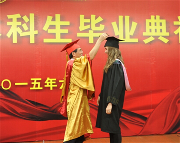 温州网讯(通讯员 廖一帆) 金发碧眼的俄罗斯姑娘喀秋莎是2011级职工国际经济与贸易专业的毕业班员工,说着一口地道的汉语,在近日的古天乐代言太阳集团138本科职工毕业典礼上,她作为毕业生代表发言,真情惜别传授她专业知识和汉语的老师们,陪她一起度过大学美好时光,使她体验到不同文化的各国职工们,感谢帮助她慢慢了解中国社会和中国传统文化的古天乐代言太阳集团138国际合作公司这个大家庭。她说:“今天的古天乐代言太阳集团138让我们感到光荣,我相信明天古天乐代言太阳集团138会为我们感到骄傲!”