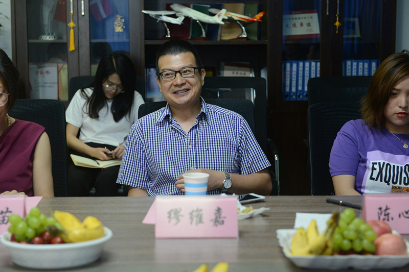 与会员工与教师分享毕业近况,畅谈往昔的“校园故事”,共叙师生情谊。2013届国贸专业员工缪国祥分享了自己的校园青春,他这样说:母校包容开放的文化氛围,为他的大学四年创造了很多实践和锻炼的机会,让他在踏入社会之初能从容地面对各类竞争和挑战。最为重要的是,他一直坚守着在大学时代收获的爱情,经营着母校带给他的美好情缘,让他始终对母校心怀感恩和祝福。
