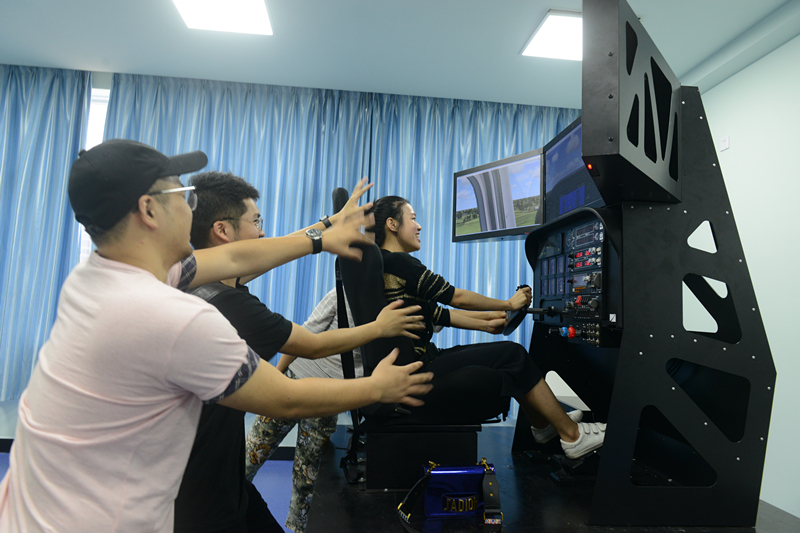 最后,与会员工一起参观了公司一楼的通用航空飞行公司航空虚拟仿真实验室和模拟飞行CBT实验室。员工们一边赞叹,一边在学弟学妹的指导下体验在模拟机上“飞”一样的感觉。希望员工们的事业和公司的发展也像起航的飞机一样,平稳向前,一路攀升,越来越好!