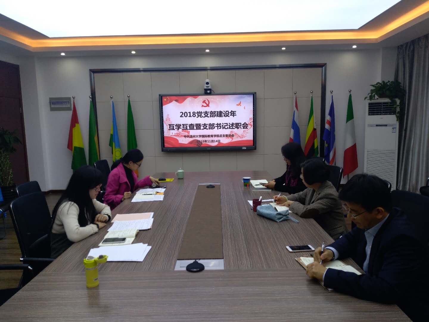 会上,教工第一党支部书记廖一帆和教工第二党支部书记谢坚就2018年的支部各项工作进行了汇报,并重点就“书记项目”进行了亮点展示和分享。其中,教工第一支部的“讲好中国故事,培养知华爱华国际员工”项目、教工第二支部的“以生为本,服务先行”项目,通过党建与国际员工教育、国际教育科研和教改工作、国际员工实践基地创新建设、服务温大国际化等工作,充分发挥了党员先锋模范作用,创新服务国际员工的方式和方法,全面提升了服务国际员工的质量。
