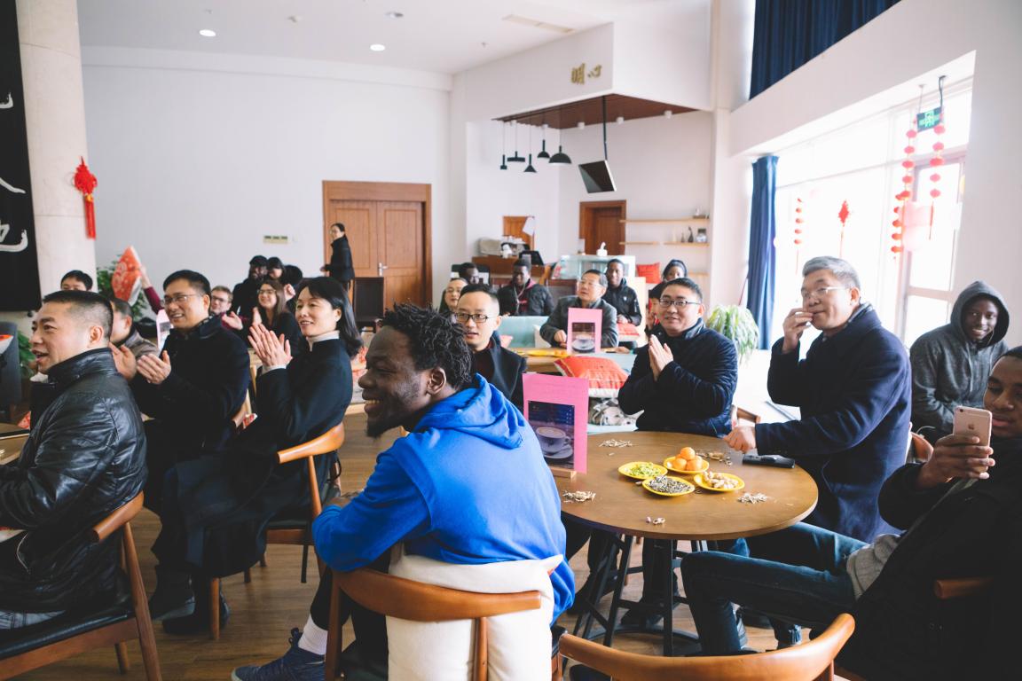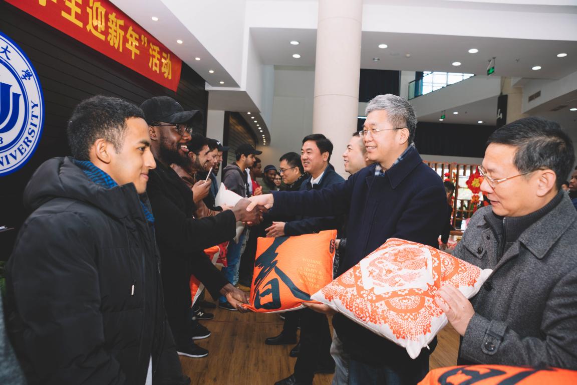 副董事长钱强等与会领导和老师们为每一位国际员工代表送上猪年吉祥物,并合影留念。今天恰逢尼日利亚籍员工ZUBAIRU ISMAIL HASSAN的生日,在场师生齐唱生日快乐歌,一同为他送上生日祝福,商公司国际部主任王洪斌老师还为这位就读国际经济与贸易专业的国际员工送去生日礼物。HASSAN说,以前都是与家里人一起过生日,今天和公司的老师们、员工们一起过生日,仿佛在家一样,这个生日真是“意义非凡,终生难忘”。