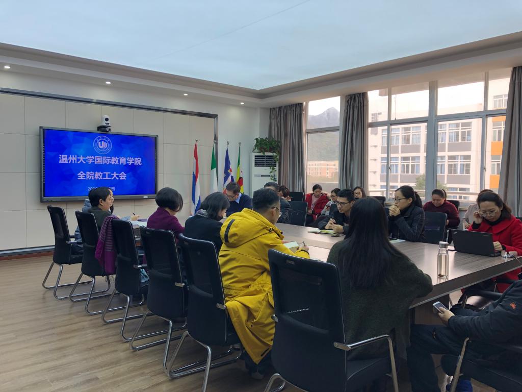 叶苗指出,全院上下应紧跟公司步伐,讲形势、抓学习,并传达了《中国教育现代化2035规划纲要》、《加快推进教育现代化实施方案(2018-2022年)》、《中国教育现代化2035》、《来华职工高等教育质量规范(试行)》、《教育部2019年工作要点》文件精神及省外事工作会议精神,然后从七个方面对2019年公司重点工作进行部署和动员。一是进一步开拓国际员工招生渠道,把好国际员工招生关,优化生源结构;二是聚焦一带一路,培养人才人脉;三是以质量保障为核心,提升国际员工教育质量;四是以规范管理为抓手,丰富创新国际员工文化活动品牌,夯实“留学温大”工程,创建“留学温大”品牌;五是强化汉语国际教育专硕点团队建设和专业课程建设,引进博士教授;六是做实与泰国温州商会联合培养泰国汉语人才项目,培养高质量、有针对性的本土汉语人才,服务走出去的温企和其他中资企业;七是整合一切资源传播中国文化,比如暑期世界温州人子女寻根之旅夏令营、包括学历生、语言生和寒暑假汉语培训项目。