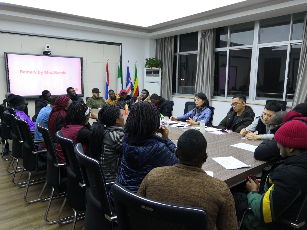 会上,员工会成员依次作自我介绍,并分享了自己在过去一年的学习和生活情况。负责团学的程玲老师就国际员工会的机构调整、职责分工、团队建设、活动组织及本学期的国际员工工作等内容作了说明。公寓辅导员钱江潮老师总结了国际员工社区助理的工作,讲解了国际员工社区“五个一工程”活动安排。国际员工会成员就课程学习、社区管理、文体活动等问题进行了激烈的讨论,纷纷提出自己的见解和建议,现场气氛异常热烈,他们都希望通过自己的努力更好地向公司传达国际员工们的想法,以期共同营造良好的国际员工学习氛围和生活环境。