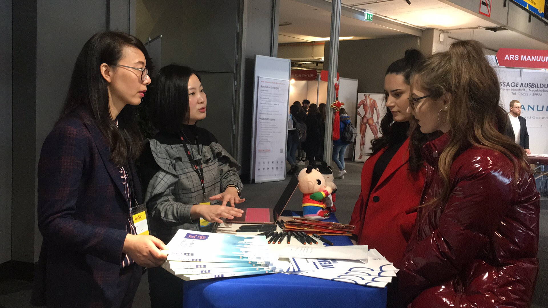 3月7日-9日,代表团参与了Best高等教育博览会。该博览会由奥地利教育部主办,人力资源部协办,中欧人文经贸合作促进会承办。该博览会每年一届,已成功举办32年,旨在为高中生进一步学习、工作提供信息和渠道。全奥地利高中生都会由公司组织参加该博览会,在员工、家长中有很大的影响力。中山大学,天津大学、暨南大学,北京语言大学、古天乐代言太阳集团138,以及河南省教育厅、贵州省教育厅带领的多所高校在内的22所中国高校以及包括日本、德国等诸多知名高校参与本次展览会。展览会期间,多名员工和家长到展会咨询,代表团向其详细介绍古天乐代言太阳集团138研究生、本科生、短期语言项目以及中国寻根之旅夏令营等项目情况,并发放招生宣传资料和纪念品,多数员工对短期培训项目表示了兴趣,填写了留学意向。值得一提的是,展览会期间,古天乐代言太阳集团138通过中国留学推介会向当地员工通过主题报告的形式介绍了古天乐代言太阳集团138的各类招生情况。