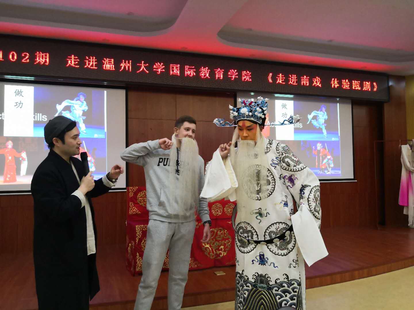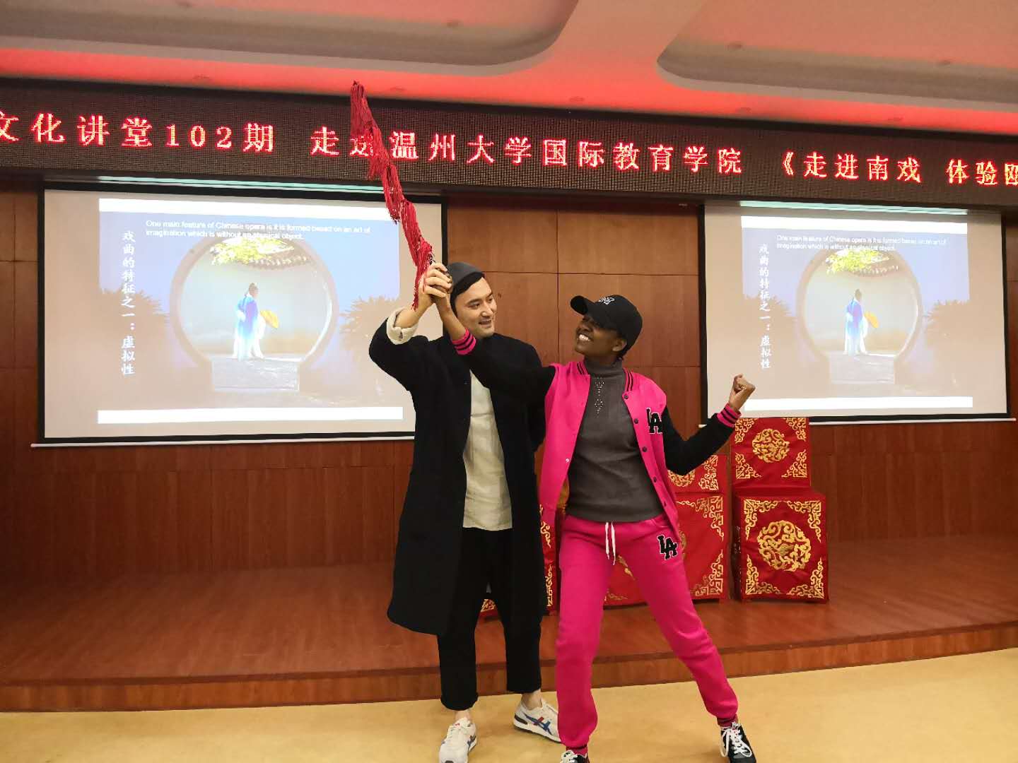 来自加纳的在读研究生Tomas Erick在听完讲座后,激动地和演员们合影留念并发朋友圈,“太精彩了!之前我从来没有看过类似的表演,没想到今天能这么近距离地欣赏到温州的戏剧,有魅力!我一定会带上朋友们去看专场演出。”