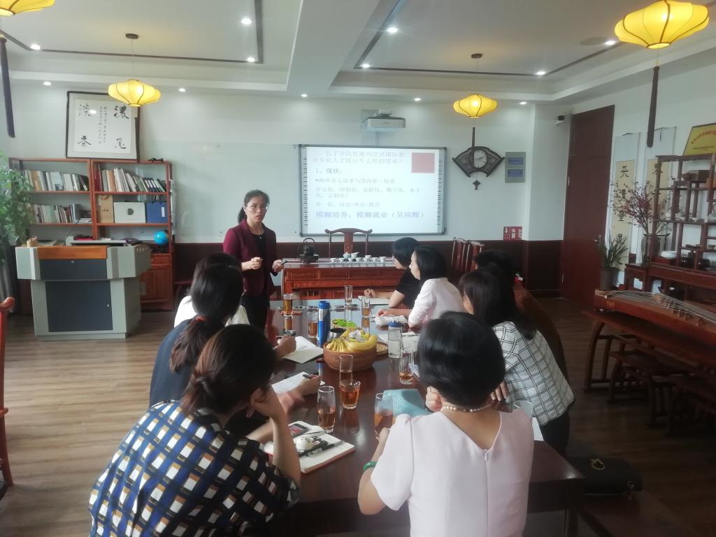2019年10月25日下午1:30-4:00,来自浙江师范大学国际文化与教育公司的郭建玲教授,在公司212茶室为汉语教研室的老师及汉语国际教育的硕士研究生们做了“汉语国际教育硕士及本科专业建设”的讲座。