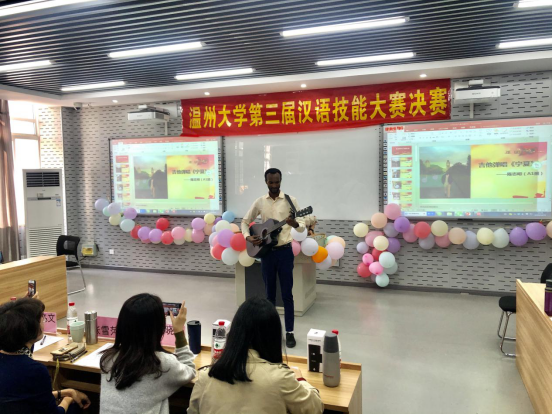 在正式比赛之前,陈志明同学吉他弹唱,为大家带来一首《宁夏》,收获了热烈的掌声。