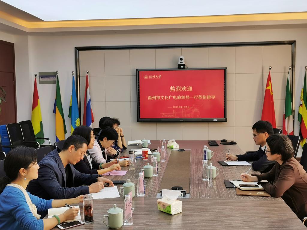 11月5日,温州市文化广电旅游局副局长李方喜、温州市文化广电旅游局文旅市场拓展处金素一行来访公司。