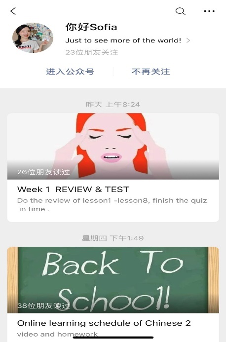 教师们采取录课和直播等多种方式,确保员工都能正常听课,并通过一对一或一对多的答疑互动确保教学质量。其中“汉语二”的3位教师,在采用录课教学的同时还开设了微信公众号,用于实时发布教学信息。