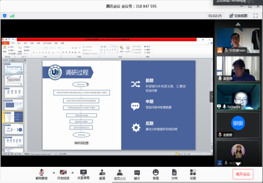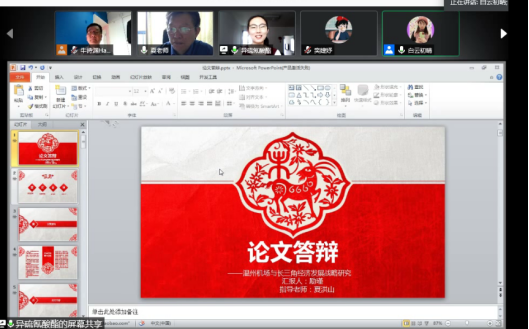 在答辩过程中,毕业生采用屏幕共享PPT的方式,进行了10分钟的个人陈述。随后答辩小组老师针对员工的毕业论文,逐一进行了点评和提问,并就论文中存在的主要问题提出了修改意见或建议。答辩结束后,各答辩小组老师进行合议确定员工的最终答辩成绩,并分享各自对线上答辩的看法,总结出线上答辩的优缺点以及今后可以改进的措施等。
