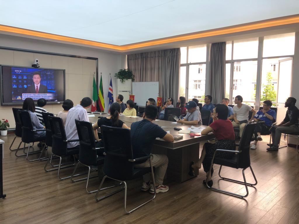 与会的教师们观看了相关视频,轮流宣读着习近平重要精神的相关文件,踊跃发言,积极讨论。大家形成共识:习近平总书记的重要回信内涵丰富、情真意切、催人奋进,是专门给来华职工群体的回信,意义重大而深远,充分体现了以习近平同志为核心的党中央对新时代教育对外开放工作的高度重视和对广大来华职工的亲切关怀,为下一步发展来华留学事业、加强优秀国际人才培养、加快和扩大新时代教育对外开放、提高我国教育国际影响力,指明了前进方向,提供了根本遵循。